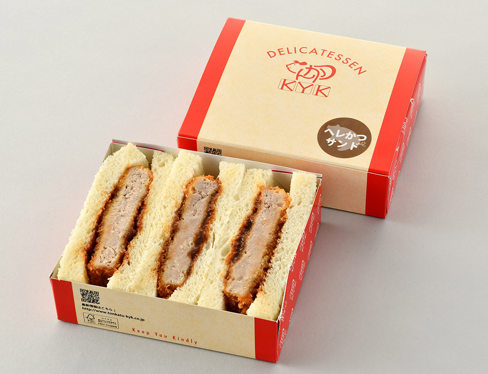 さくっとじゅわっと美味しいタレがしみ込んだカツサンドです。ヘレかつとタレのハーモニーがおりなす本物の味をお楽しみください。