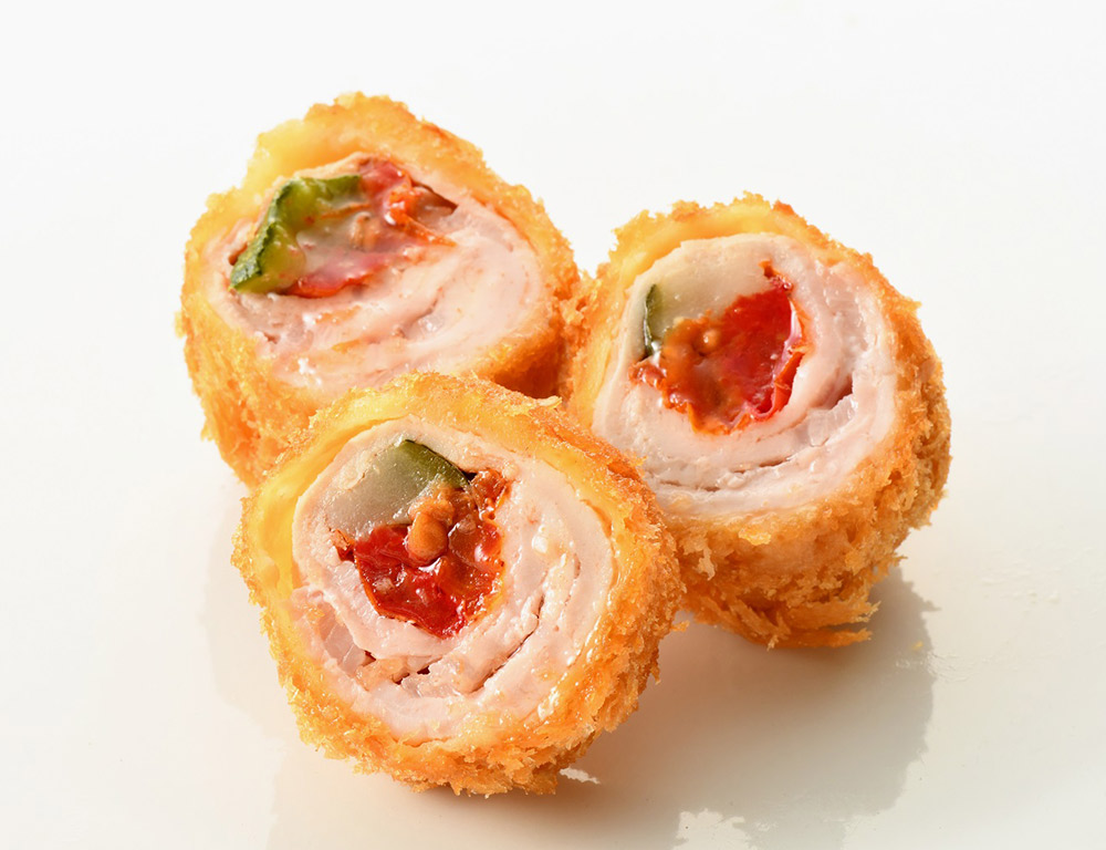 キャロットラぺの酸味とさつま芋のホクホクした食感と甘みが豚ロースの旨味をより一層引き立て、衣のサクサク感と秋の気配を感じさせる商品です。